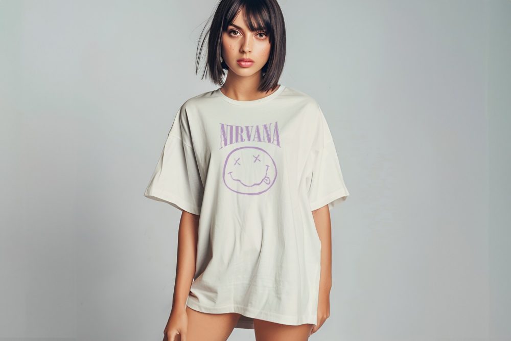 T-shirt oversize coton bio femme Femmes avec un design de Nirvana Smiley Artwork mauve
