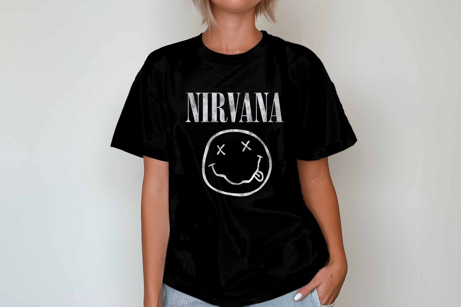 T-shirt oversize coton bio femme Nirvana avec un design de Nirvana Smiley blanc