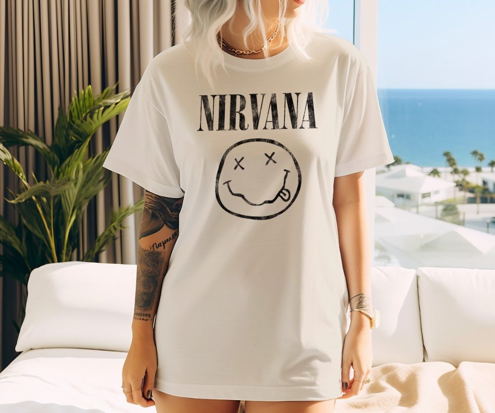 T-shirt oversize coton bio femme Nirvana avec un design de Nirvana Smiley noir
