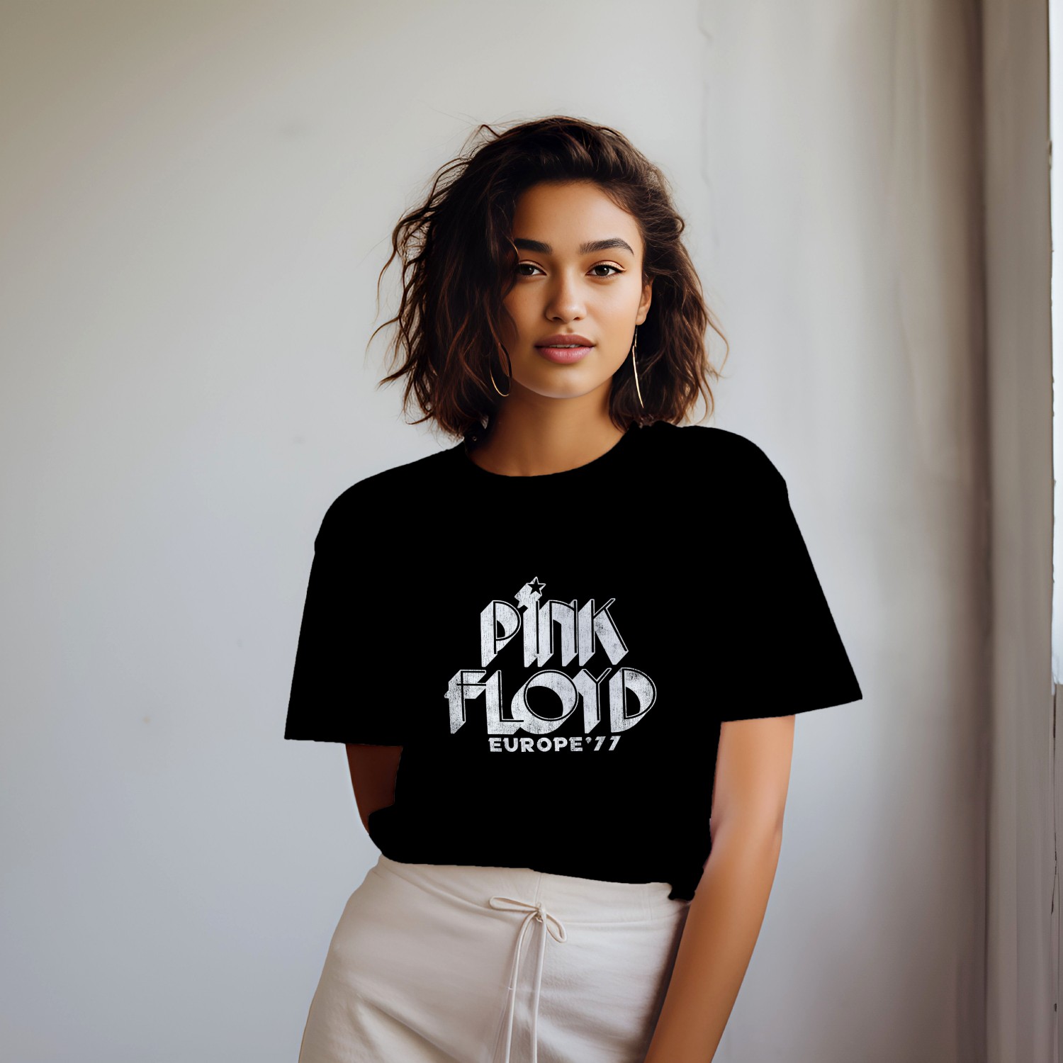 T-shirt oversize coton bio femme Pink Floyd avec un design de Pink Floyd Europe 77 blanc