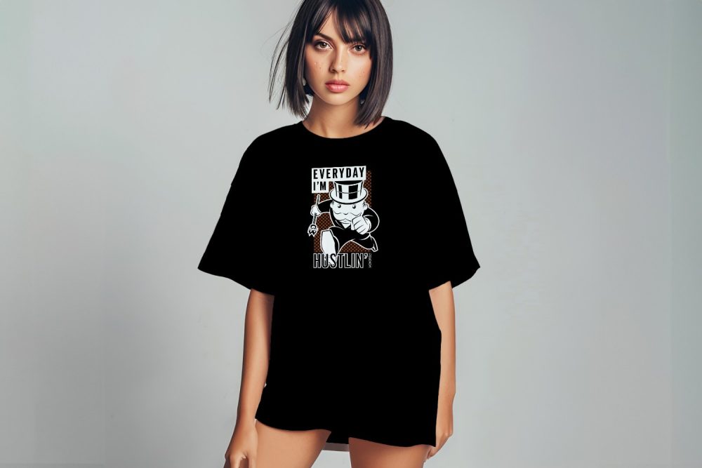 T-shirt oversize coton bio Femme Monopoly avec un design de Monopoly Everyday I'm Hustlin' blanc