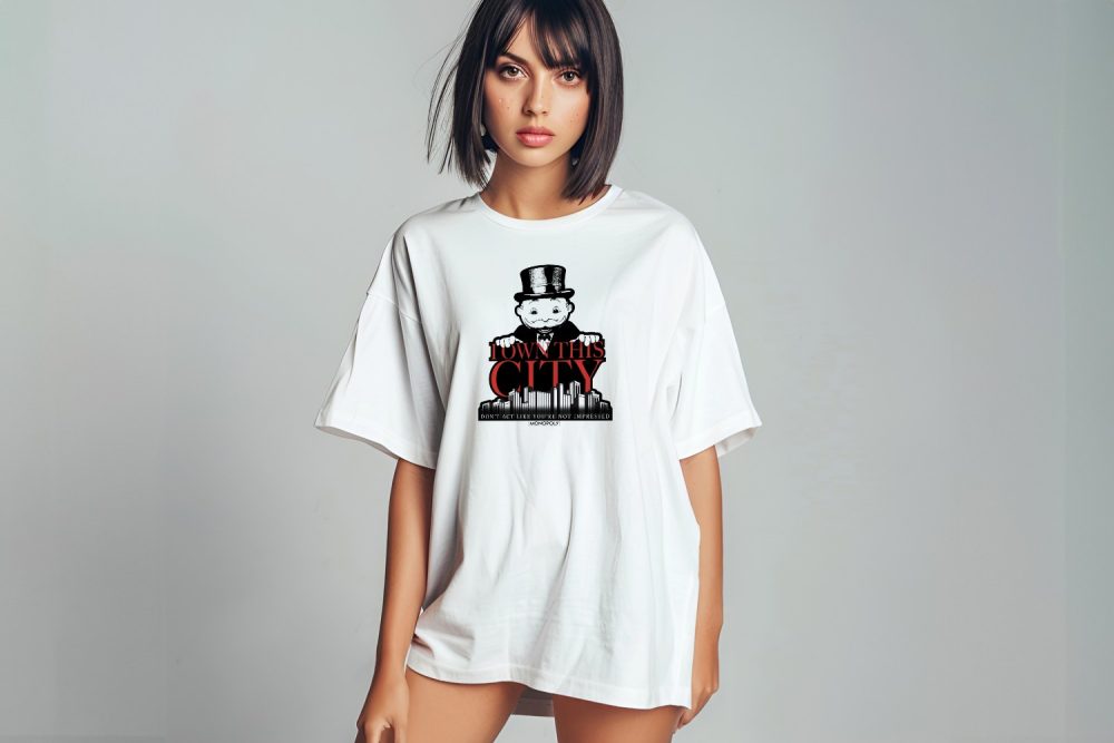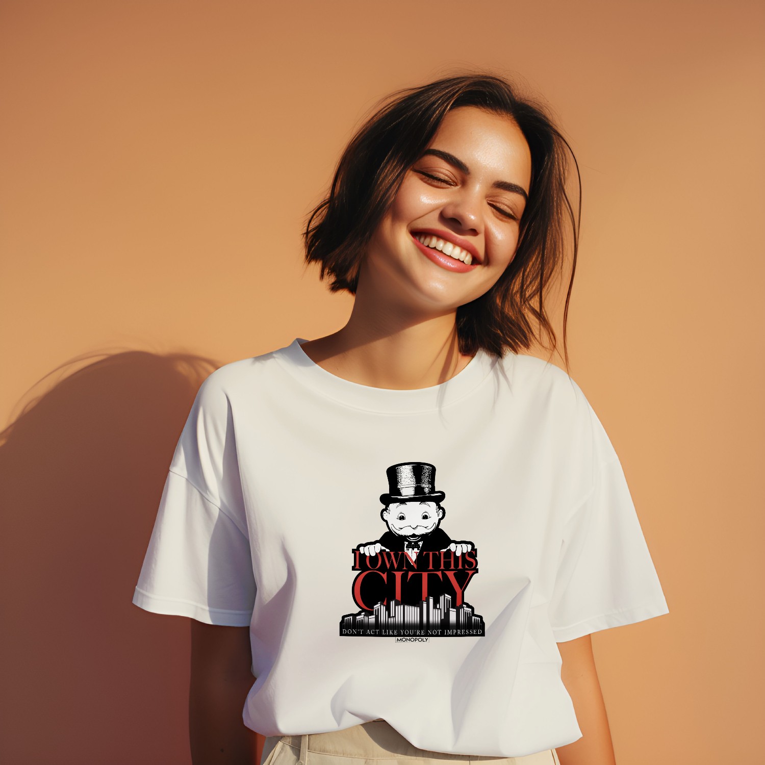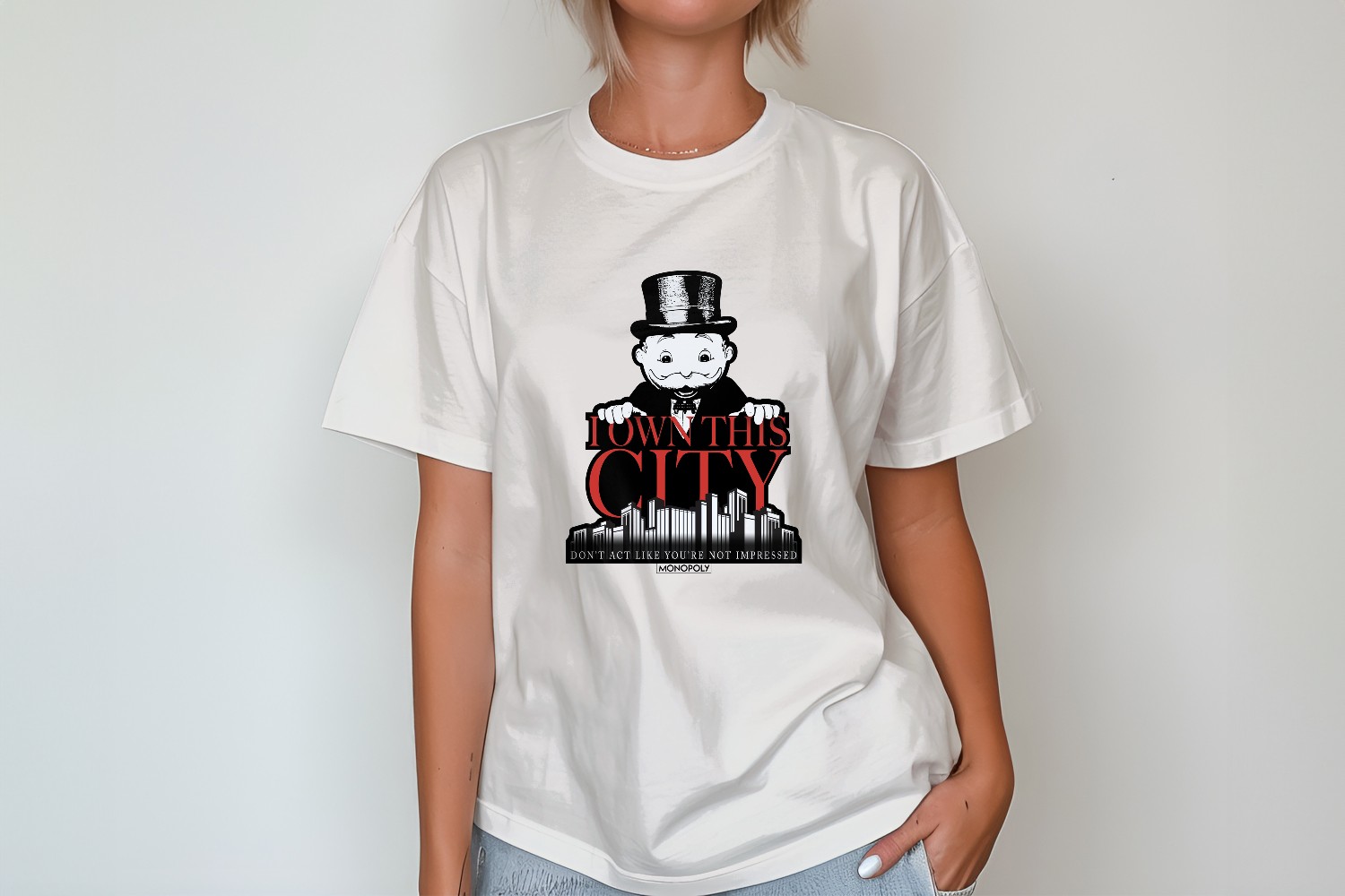 T-shirt oversize coton bio Femme Monopoly avec un design de Monopoly I Own This City noir