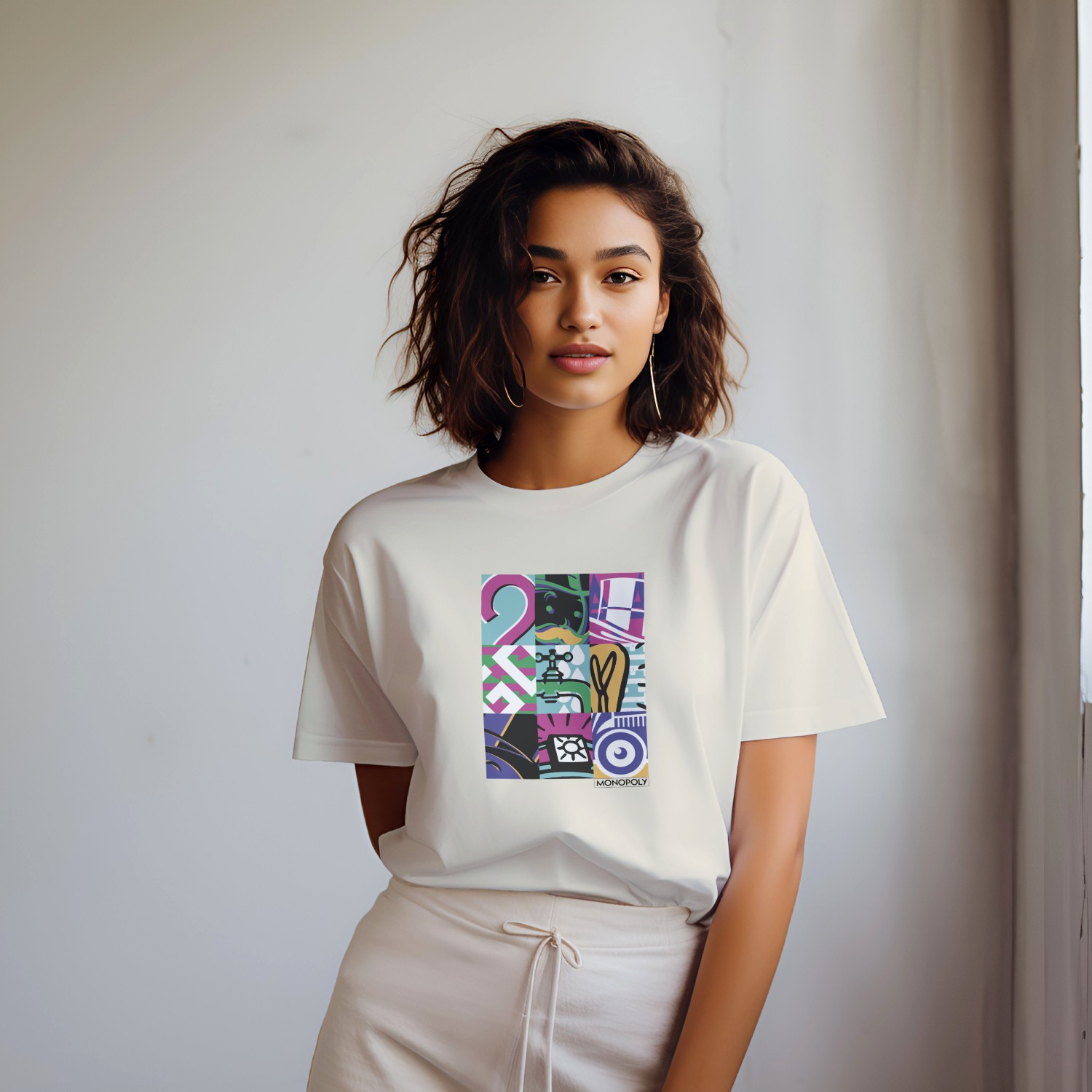T-shirt oversize coton bio Femme Monopoly avec un design de Monopoly Symbols noir