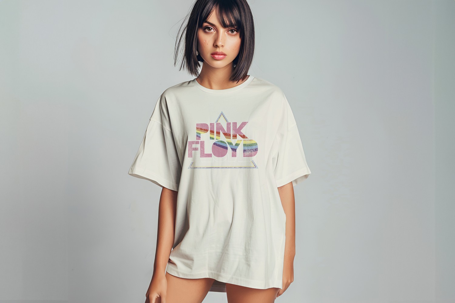 T-shirt oversize coton bio femme Pink Floyd avec un design de Pink Floyd Rainbow blanc