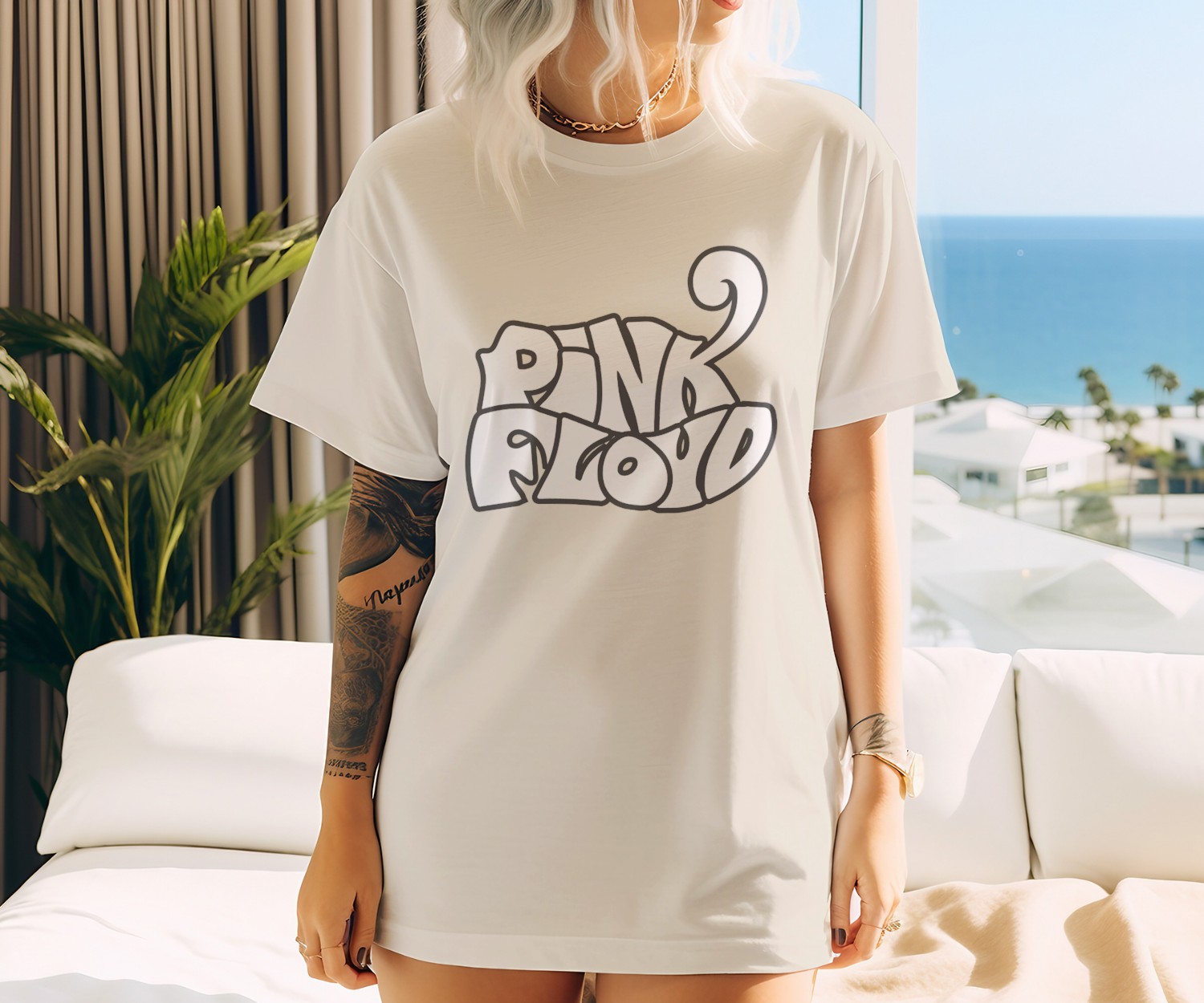 T-shirt oversize coton bio femme Pink Floyd avec un design de Pink Floyd Wavy blanc