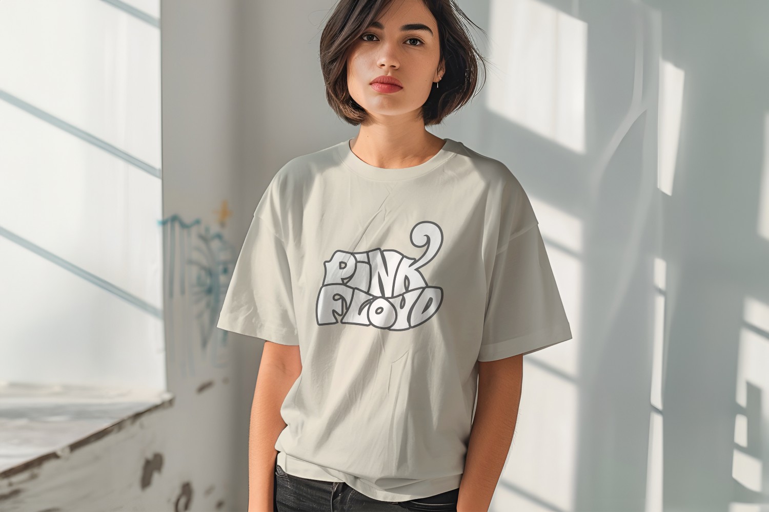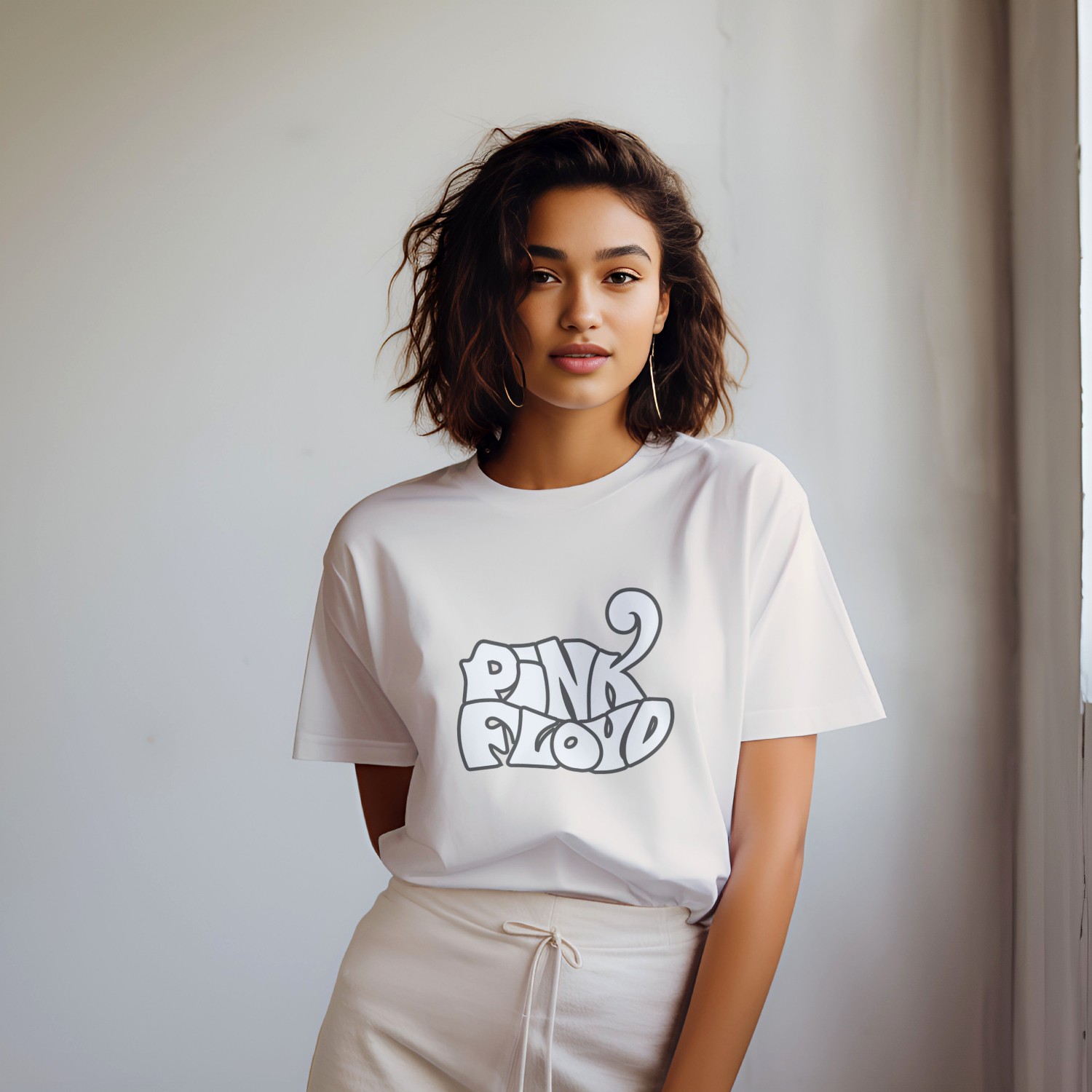 T-shirt oversize coton bio Femme Pink Floyd avec un design de Pink Floyd Wavy blanc