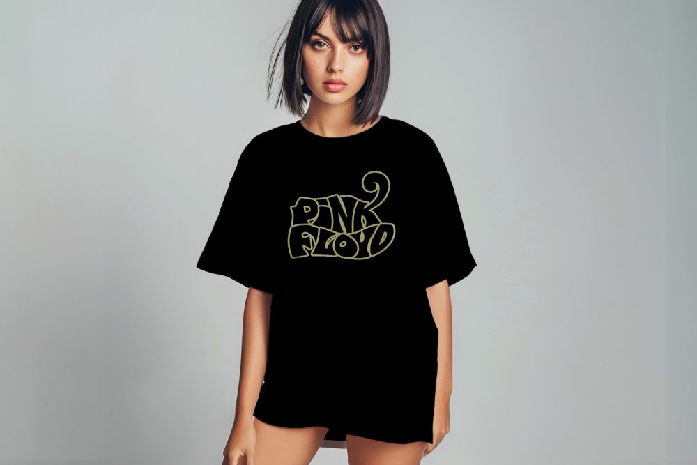 T-shirt oversize coton bio Femme Pink Floyd avec un design de Pink Floyd Wavy noir