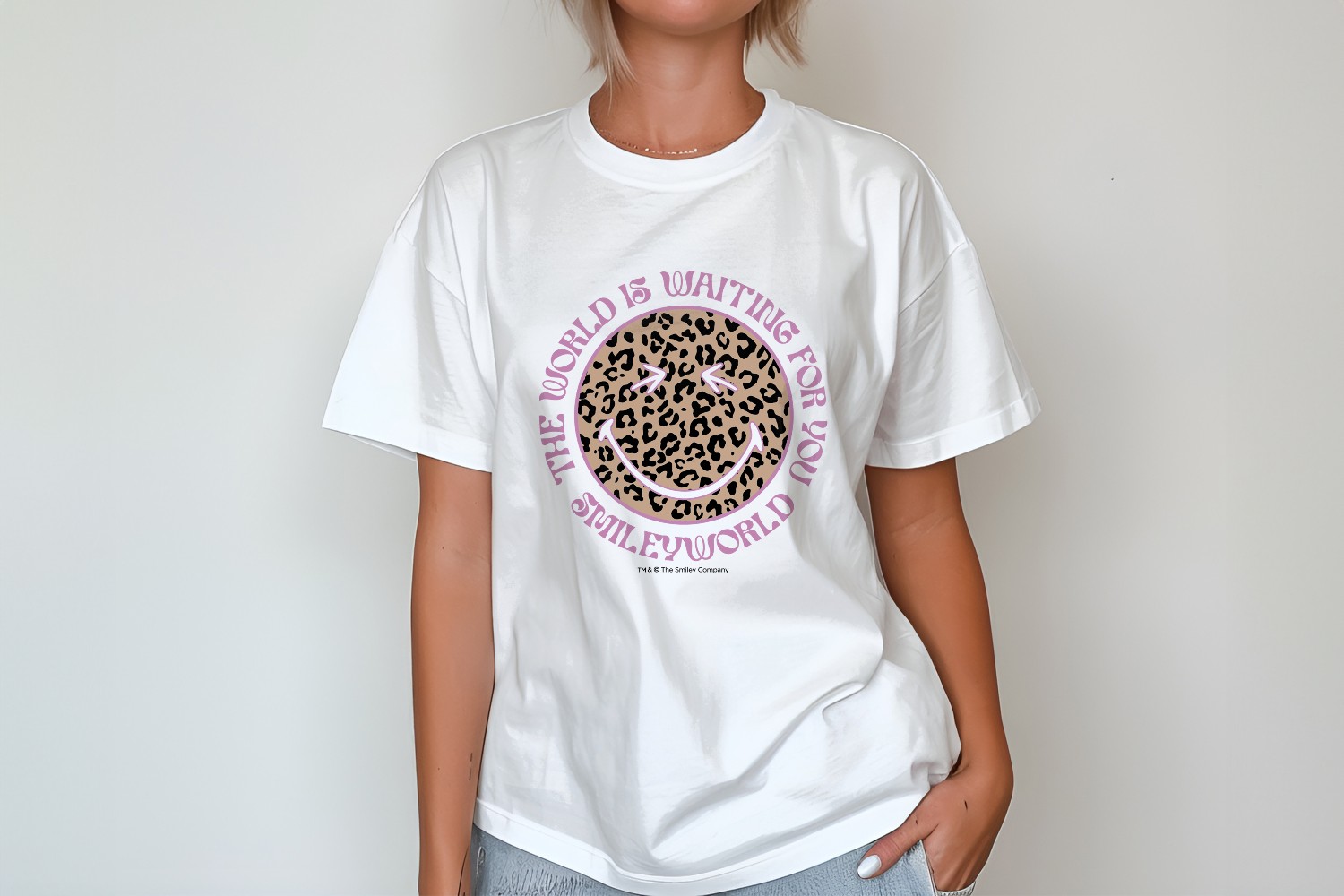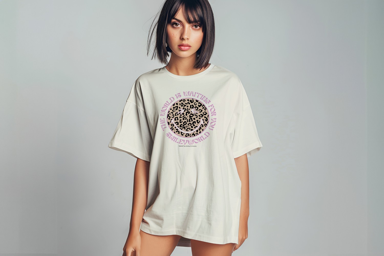 T-shirt oversize coton bio femme Smiley World avec un design de Smiley World The World Is Waiting For You