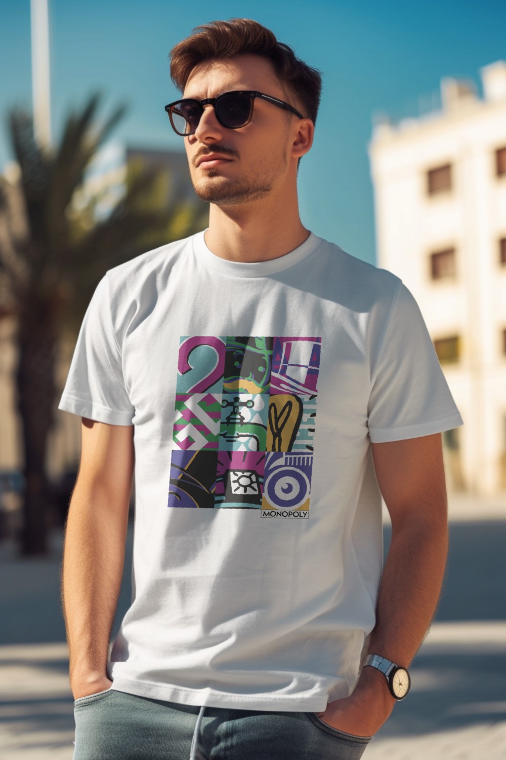 T-shirt Premium Homme Monopoly avec un design de Monopoly Symbols noir